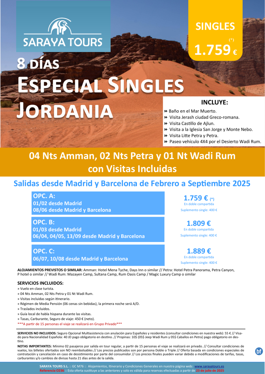 Especial Singles a Jordania 8 días! Circuito con Visitas Incluidas: Ammán, Petra, Wadi Rum hasta Feb26
