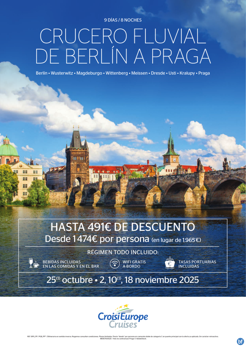 Hasta 491€ DESCUENTO - crucero de Berlín a Praga - 9 días - Todo Incluido - 25/10 + 02/11 + 10/11 + 18/11