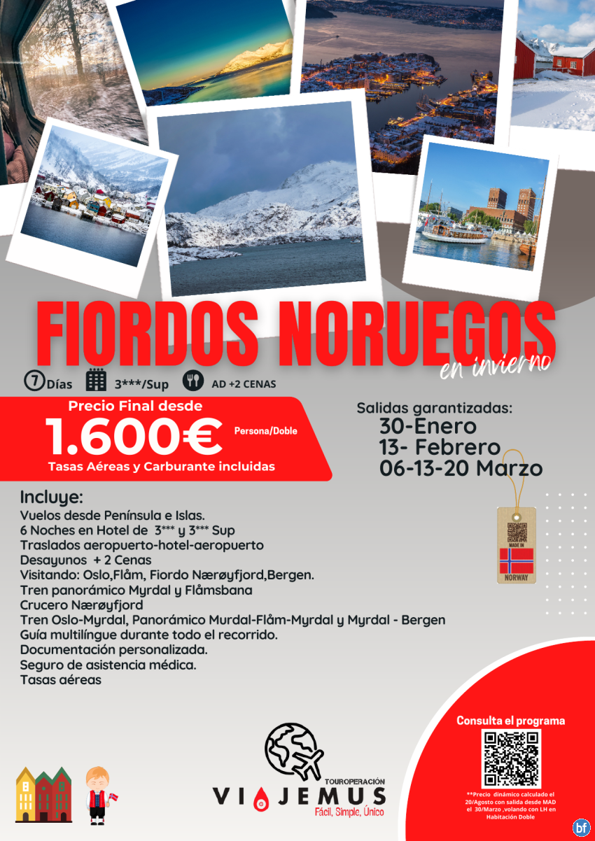 Fiordos Noruegos en invierno, un espectáculo increíble, un silencio mágico. Salidas desde Península e Islas.