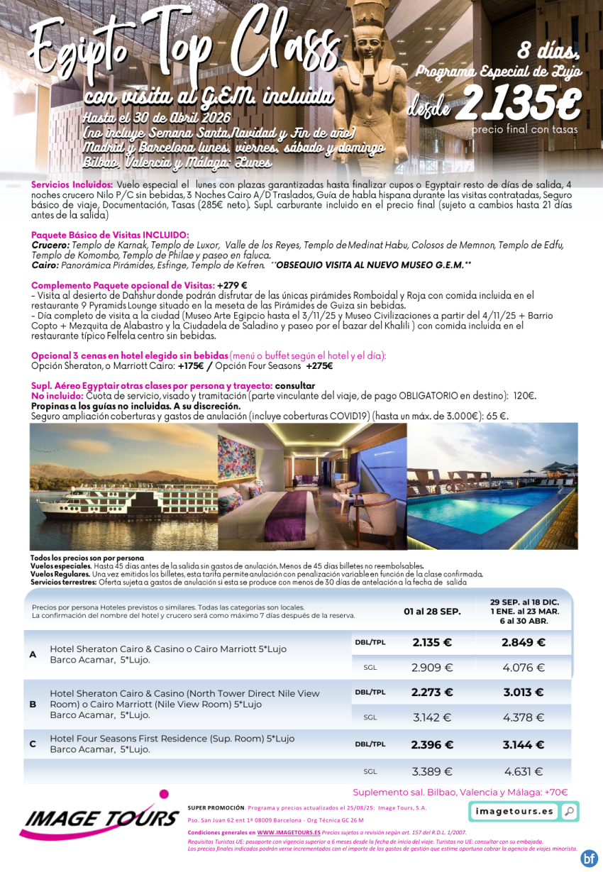 Egipto TOPCLASS 8 días de viaje de Lujo con precios hasta abril 2026 ¡Incluye visita al GEM! desde 2135€