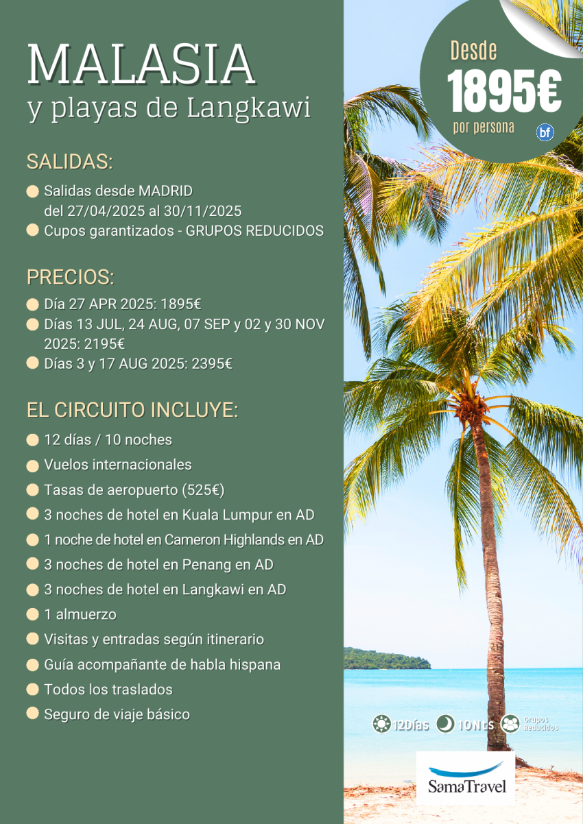 "Malasia y Playas de Langkawi": Circuito 12 días visitas y playa [Cupos y precios Garantizados] *Desde 2.195€*