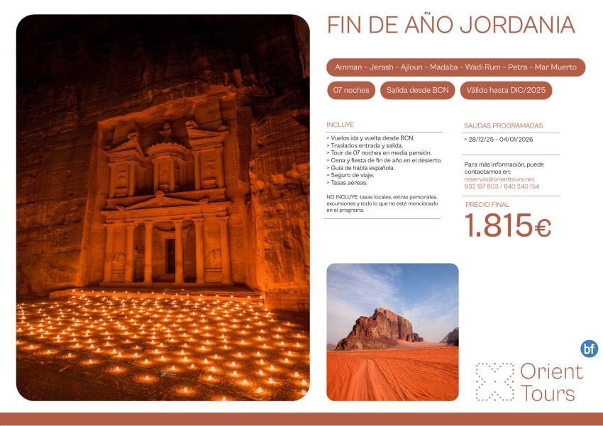 Jordania Fin de Año 07 noches salida 28/12 con vuelos desde Bcn