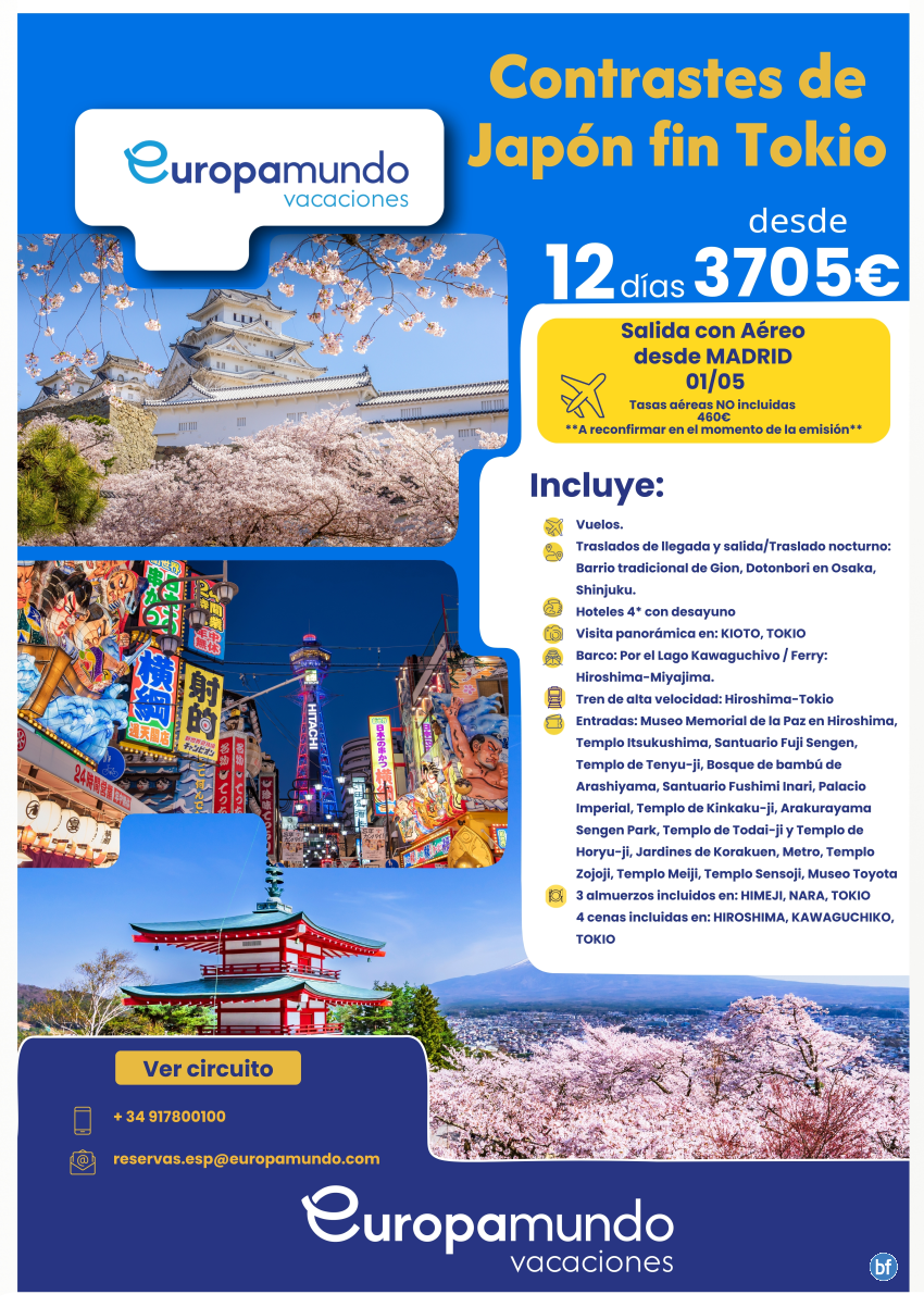 Salida Plaza a Plaza con vuelo desde Madrid. Contrastes de Japón fin Tokio