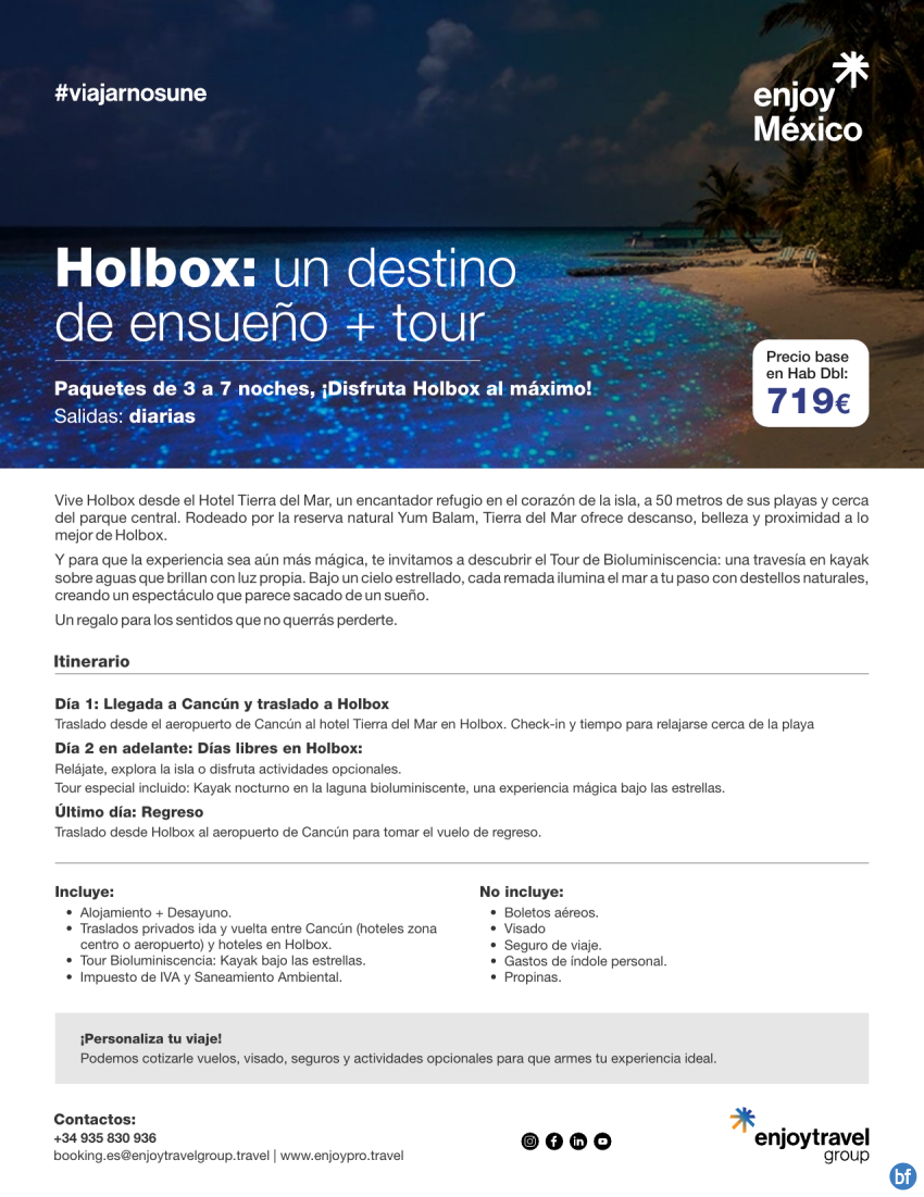 HOLBOX un destino de ensueño + tour, de 3 a 7 noches