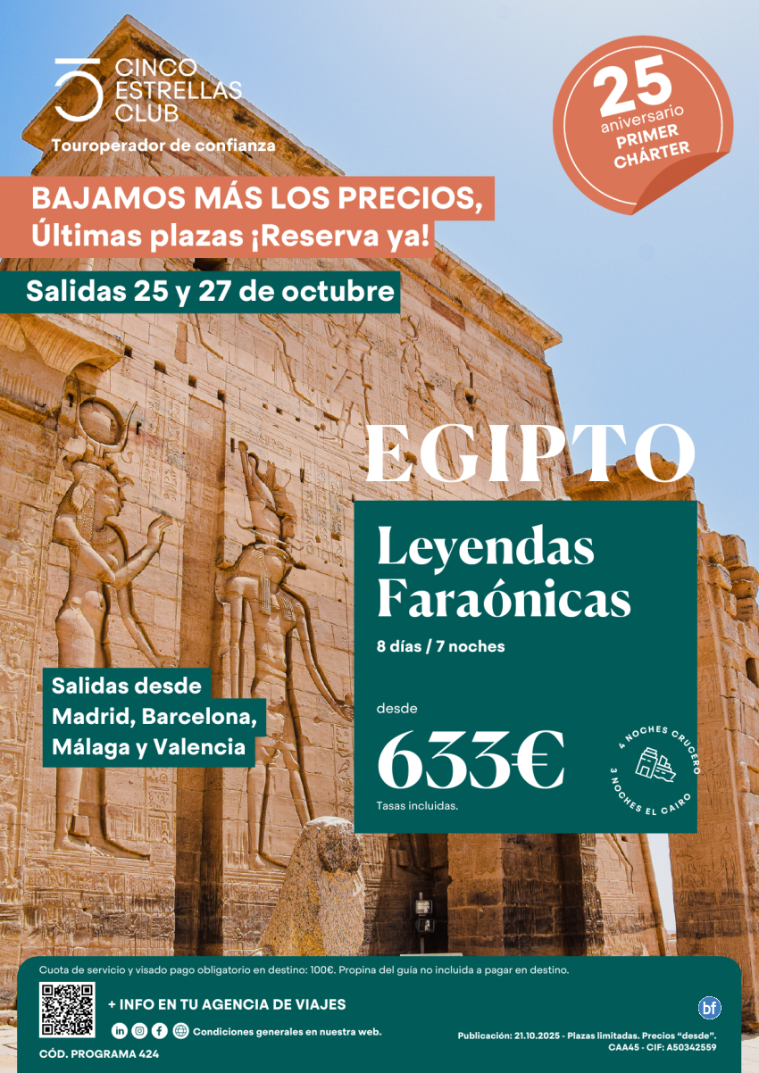 Últimas Plazas Leyendas Faraóniocas 8ds/7n dsd 633€ sal. 25 y 27 de octubre desde Mad, Bcn,Agp,Vlc