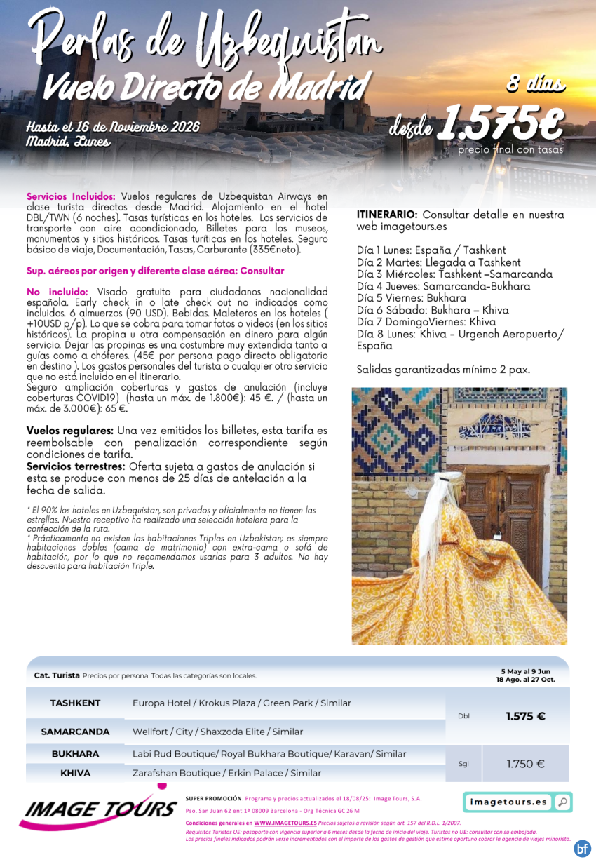 Perlas de Uzbekistán, 8 días con precios hasta noviembre 2026 desde 1575€, salida directa desde Madrid