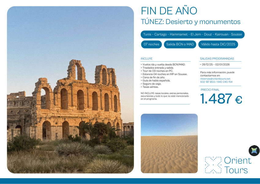 Túnez Fin de Año tour Desierto y monumentos 07 noches salida 26/12 con vuelos desde Bcn y Mad