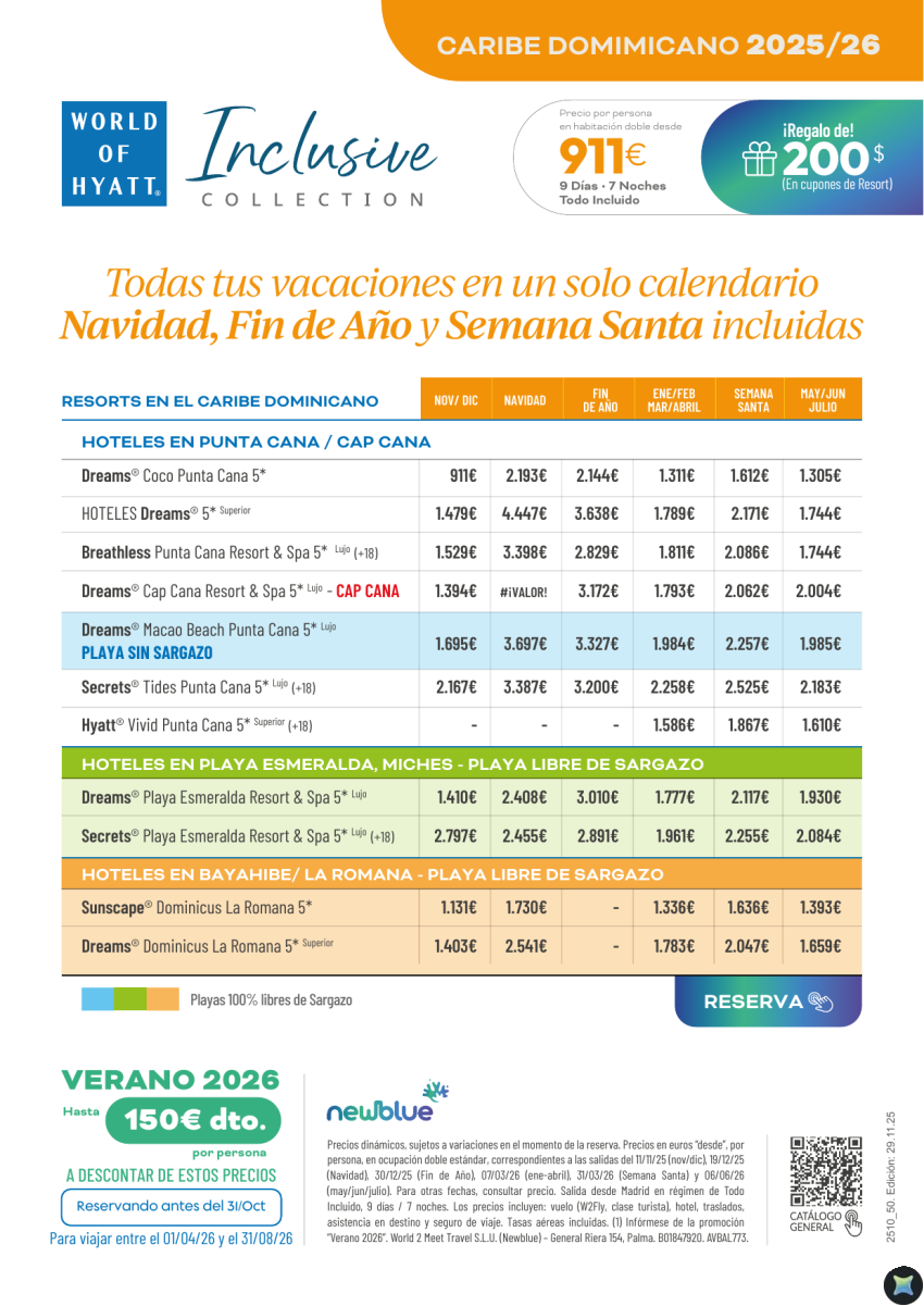 Última oportunidad 150€ de descuento Caribe Dominicano - Reserva hasta el 31/10. Viaja del 01/4/26 al 31/08/26
