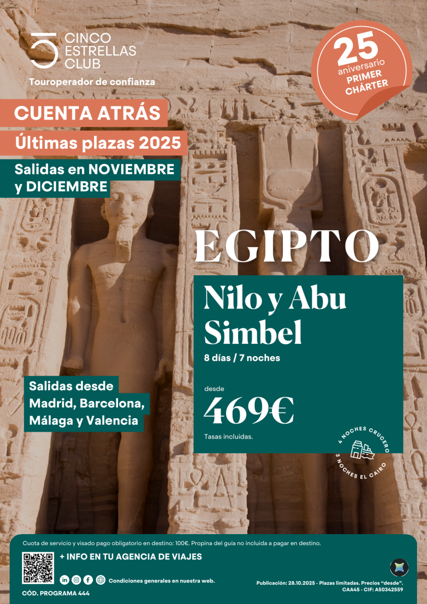 Cuenta Atrás| Nilo y Abu Simbel 8ds/7ns dsd 469€ sal nov-dic. dsd Mad, Bcn,Agp y Vlc