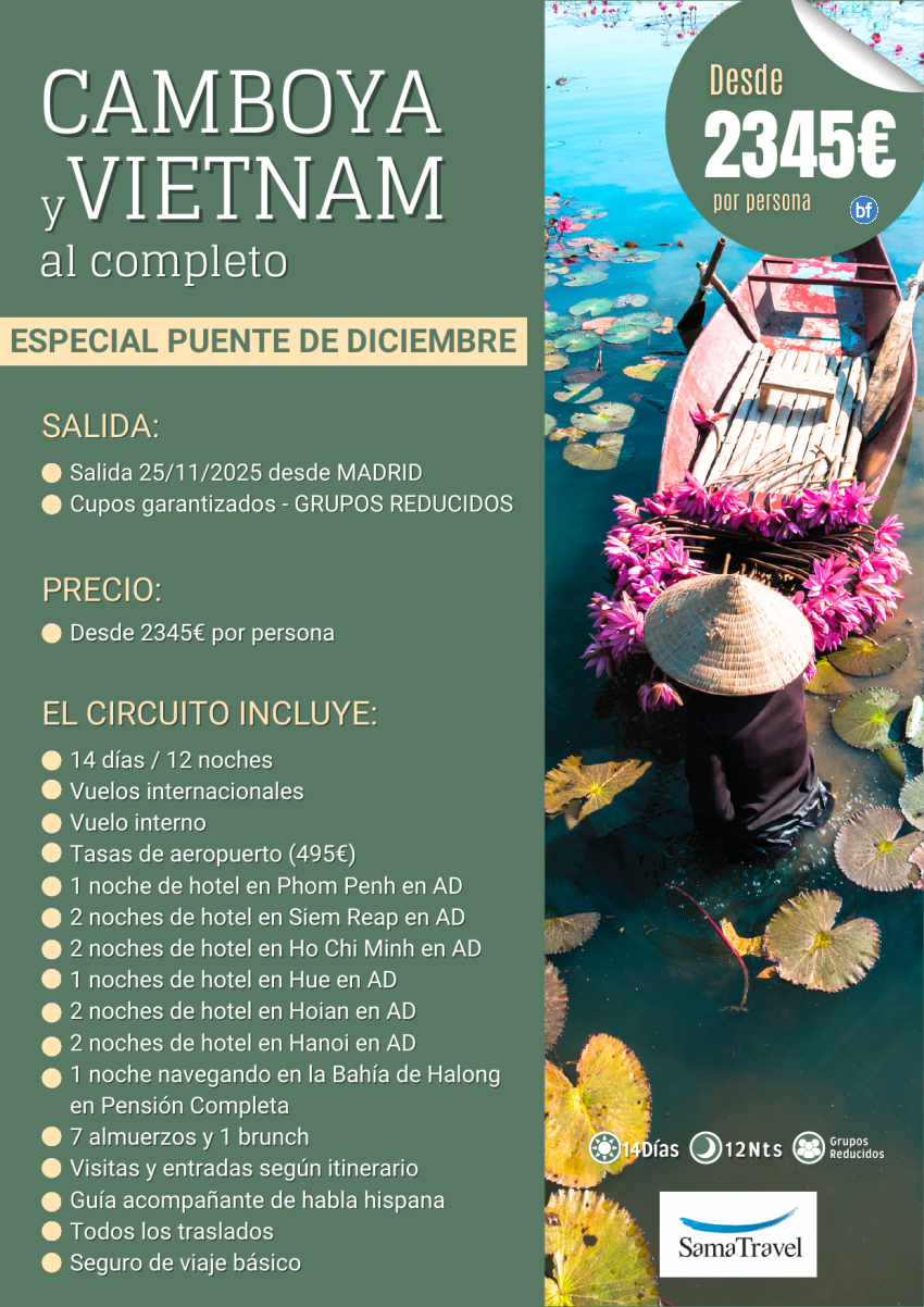 PTE DEC: Camboya y Vietnam: Circuito de 14 días - Cupos Garantizados salidas desde Madrid **Desde 2.345€**