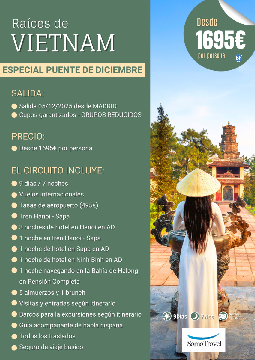 PTE DEC: Raíces de Vietnam y Sapa: Salida desde Madrid: Circuito 9 días - Cupos Garantizados *Desde 1.695€**