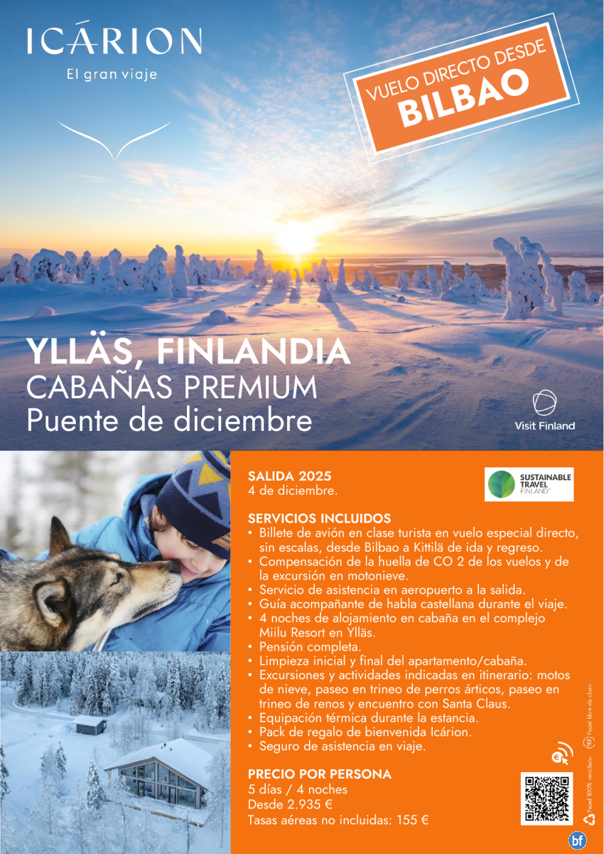 Puente de diciembre en Ylläs (Finlandia). Vuelo directo desde Bilbao