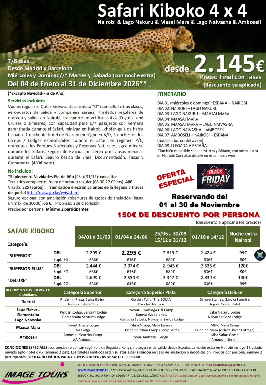 Kenya Kiboko *BLACK FRIDAY* l.Nakuru & masai mara & l.Naivasha & amboseli, 150€ de descuento, 8d desde 2.145€