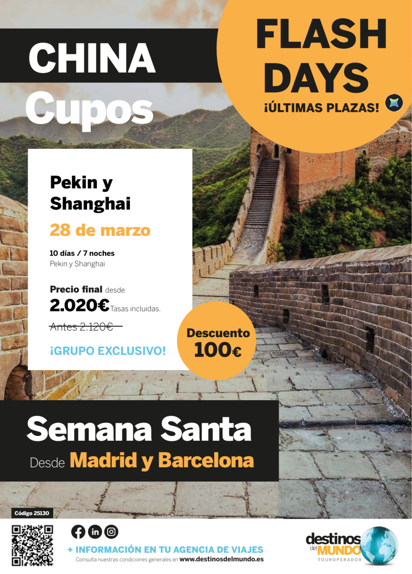 🇨🇳 SEMANA SANTA Pekin & Shanghai origen: Madrid y Barcelona 10 d / 7 n salidas: 28 de Marzo desde 2.020€🏙️