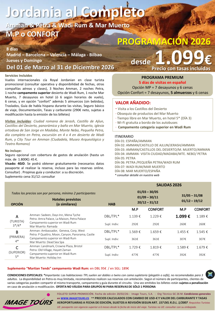 JORDANIA al Completo *Circuito 8 días Premium* con Mar Muerto y campamento superior en Wadi Rum, desde 1.099€