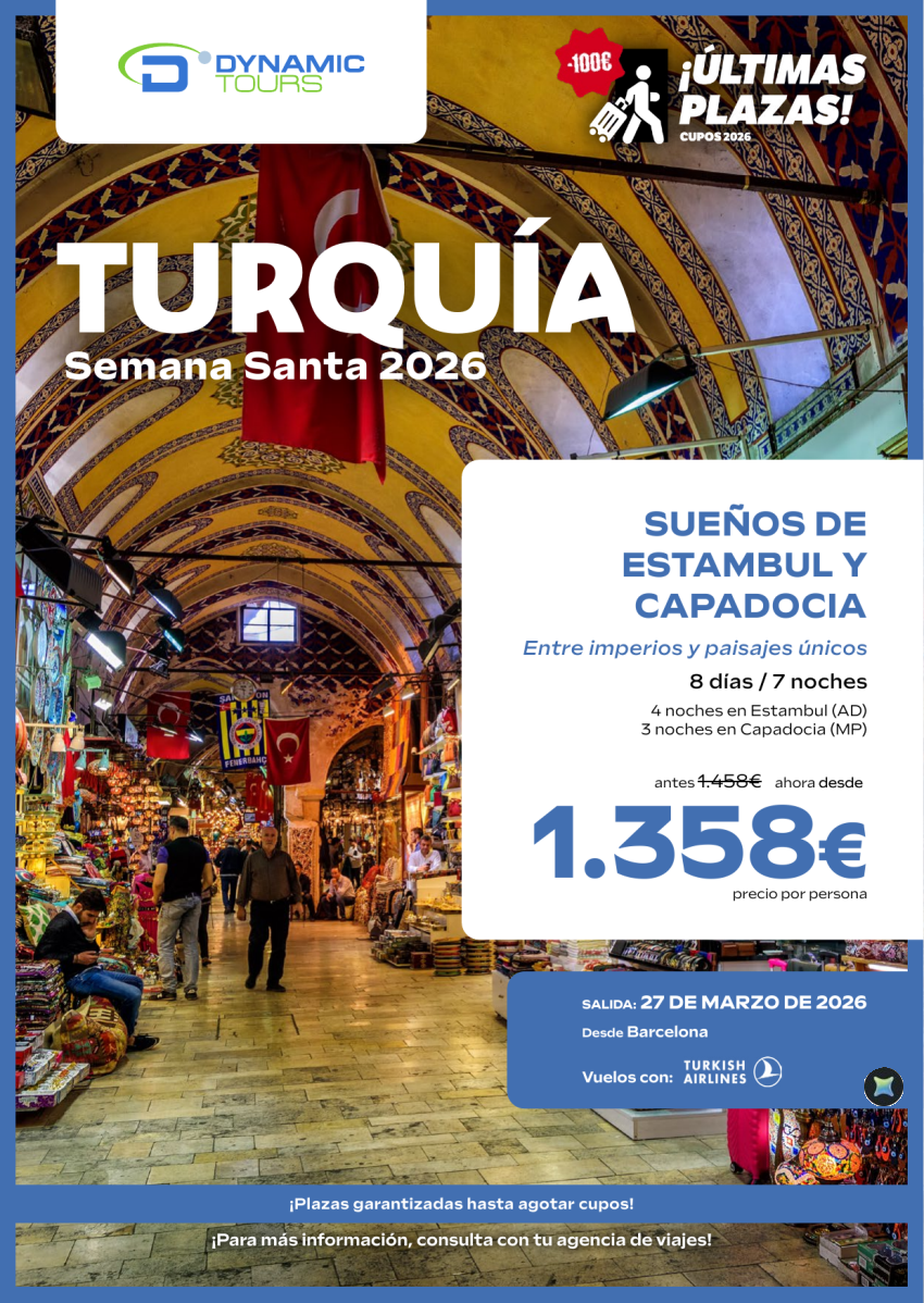 ᴛᴜʀǫᴜɪᴀ【Últimas Plazas - Semana Santa 2026】Sueños de Estambul y Capadocia『100€ de dto.』(✈ 27/03 dsd BCN)