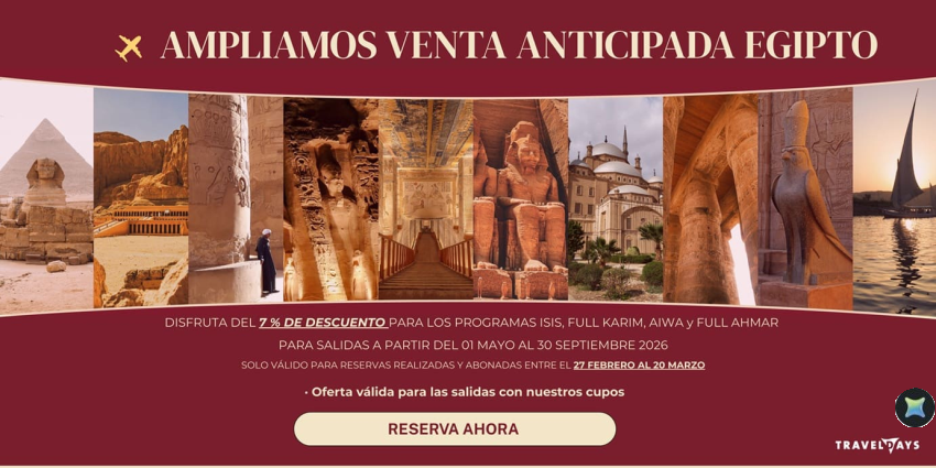 Alargamos la reserva anticipada a Egipto hasta el 20 de marzo para viajar hasta el 28 de septiembre