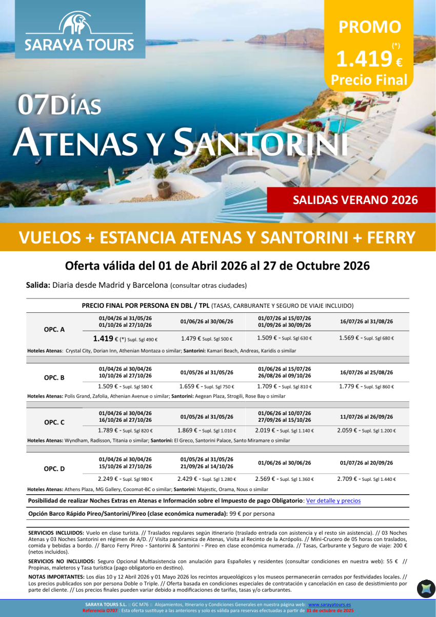 Promo Islas! Atenas y Santorini 7 días: Vuelo, Hotel, Traslados y Visita Atenas Incluida hasta Oct 26