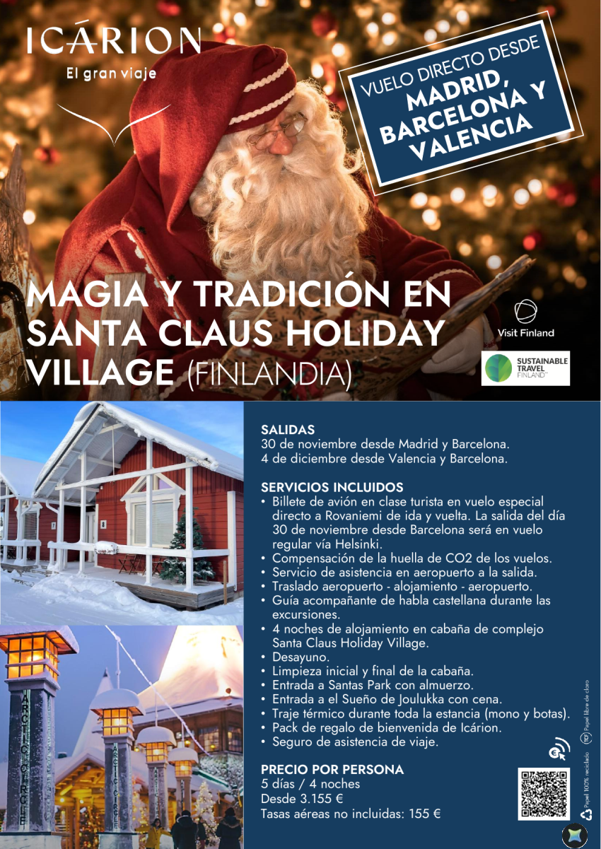 Magia y tradición en Santa Claus Holiday Village. Vuelo directo desde Madrid, Barcelona y Valencia