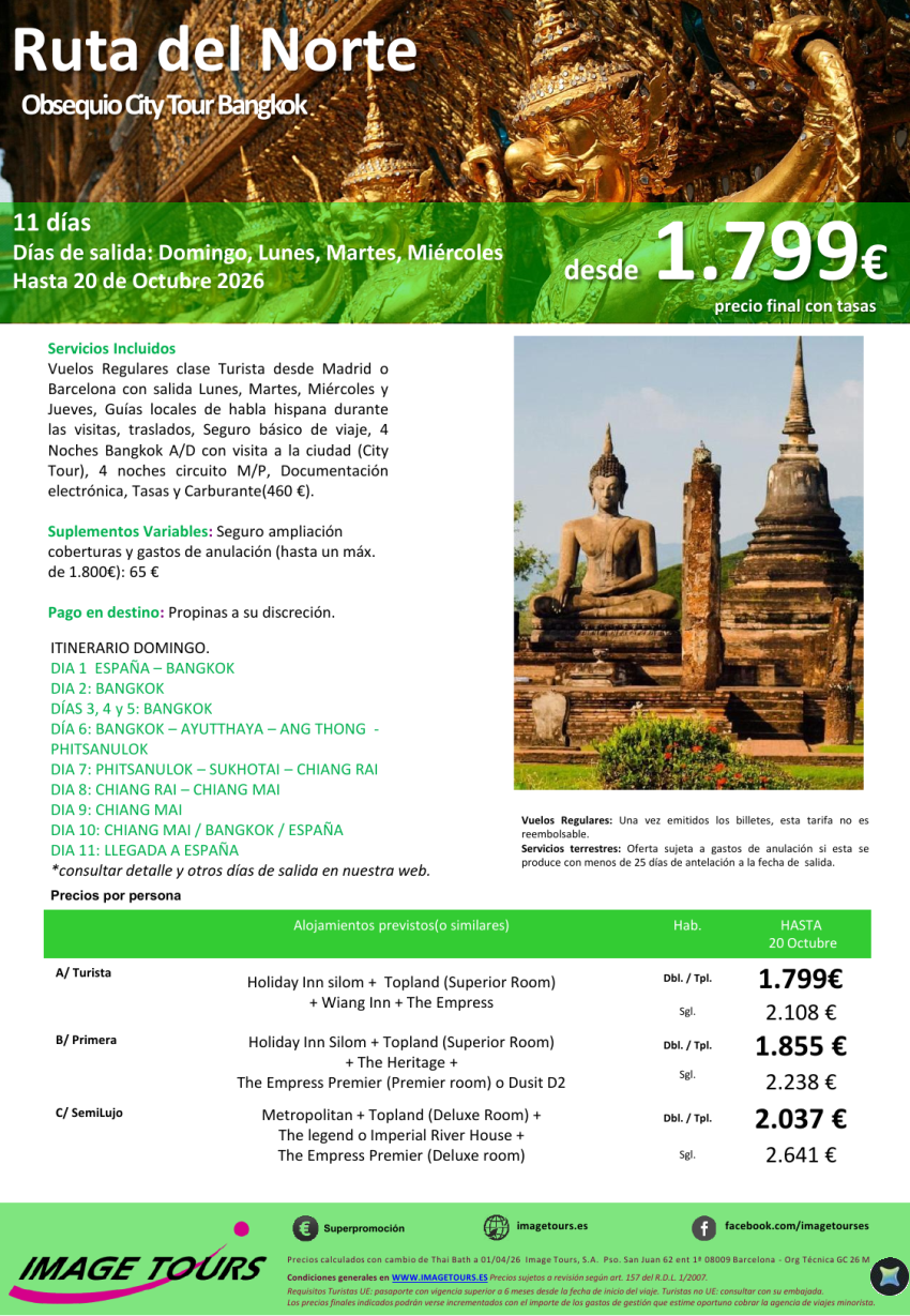 Tailandia: Ruta del Norte, 11 días con Obsequio City Tour en Bangkok desde 1.799€