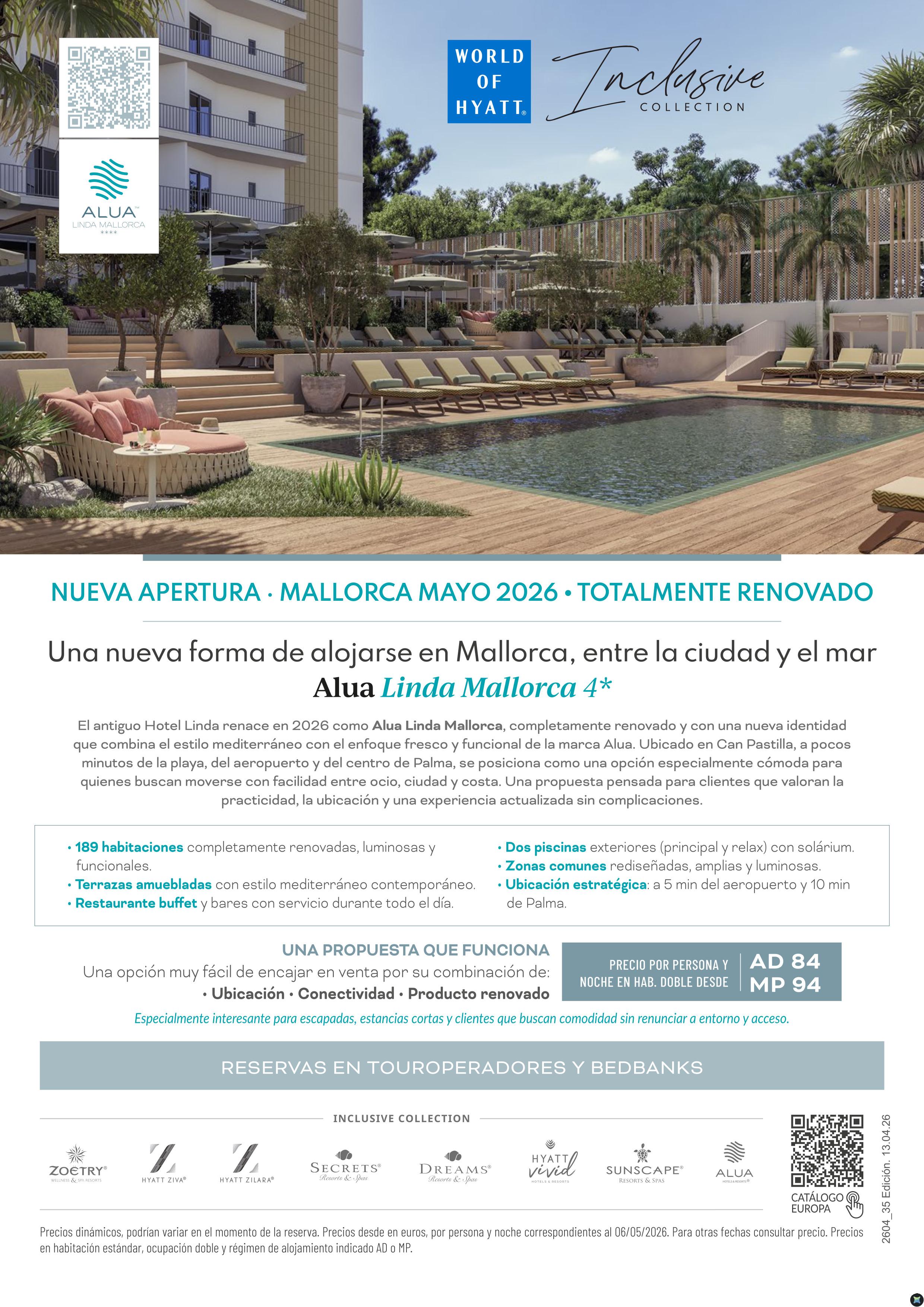 🆕Nuevo Alua Linda Mallorca 4*. Totalmente renovado - Reapertura esta primavera. Desde 84€ x persona en MP