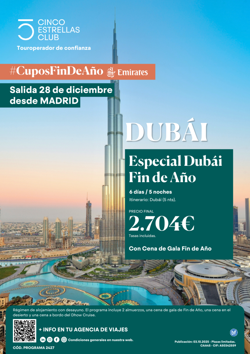 Cupos| Fin de Año Especial Dubai 6ds/5ns pvp 2.704€ salida 28 de diciembre desde Madrid