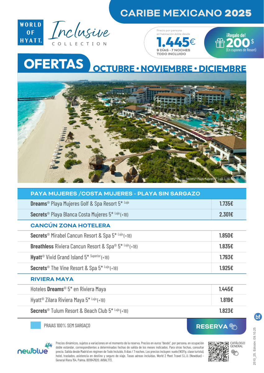 OFERTAS Caribe Mexicano - oct/nov/dic. Disfruta de Playa Mujeres sin sargazo y de Riviera Maya y Cancún
