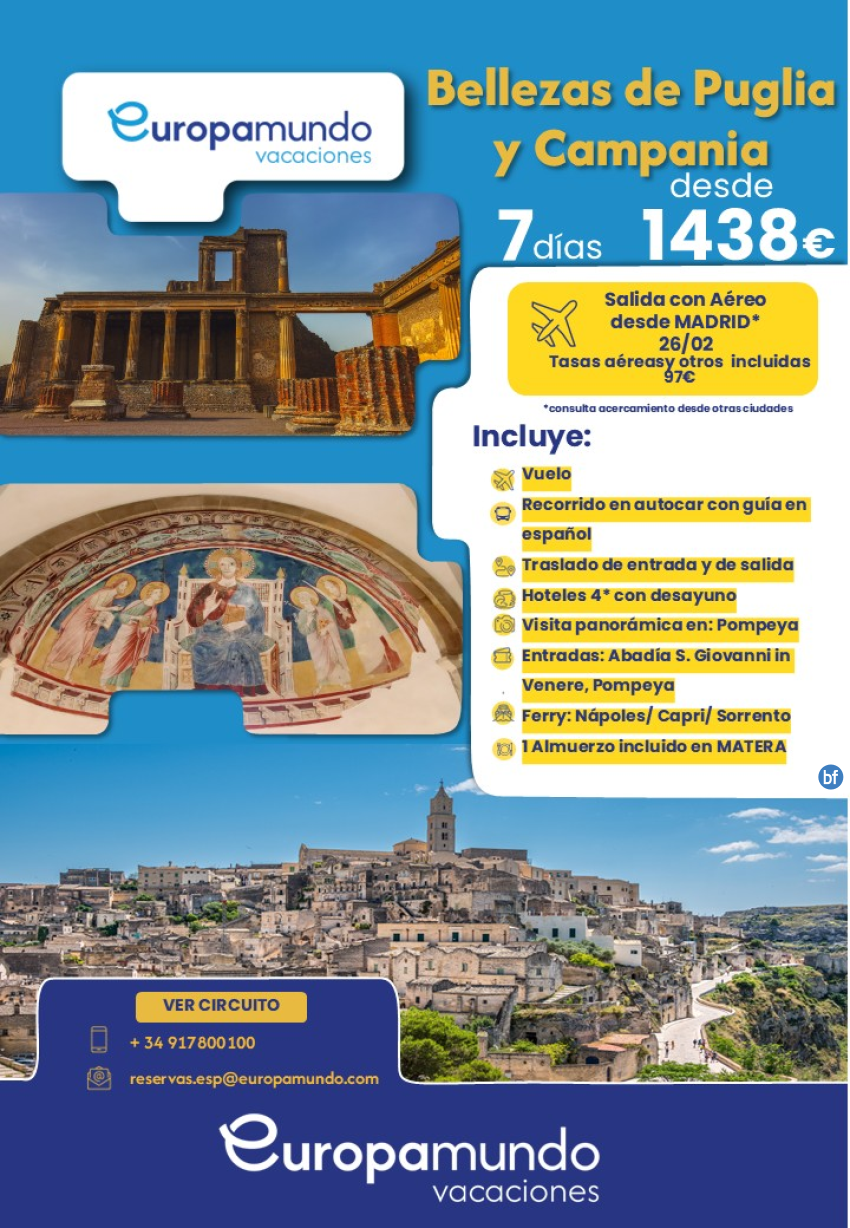 Bellezas de Puglia y Campania. Salida con Aéreos desde Madrid