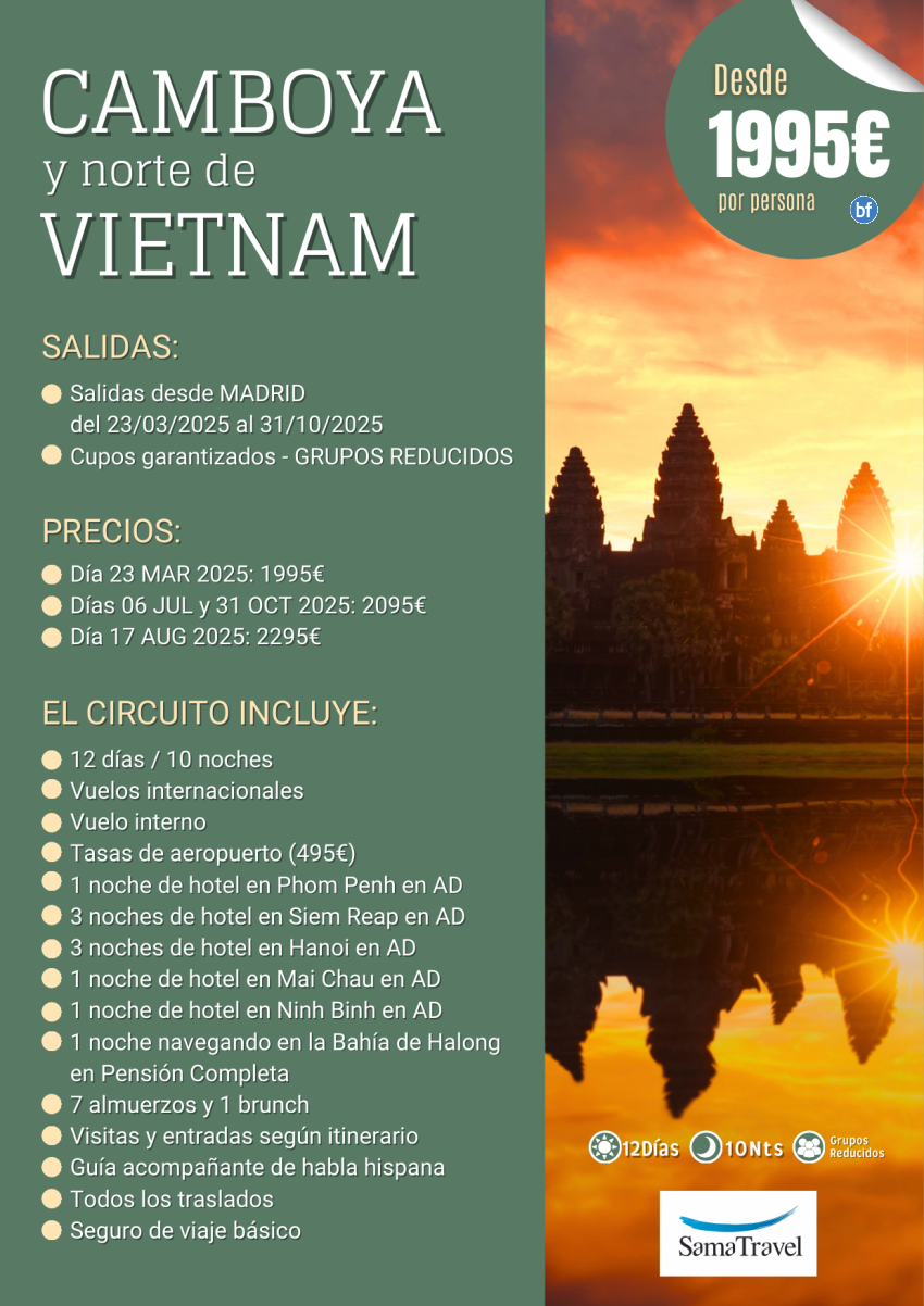 Camboya y Norte de Vietnam: Circuito 12 días (23FEB-31OCT) *Desde 2.095€* [Cupos y precio garantizados]