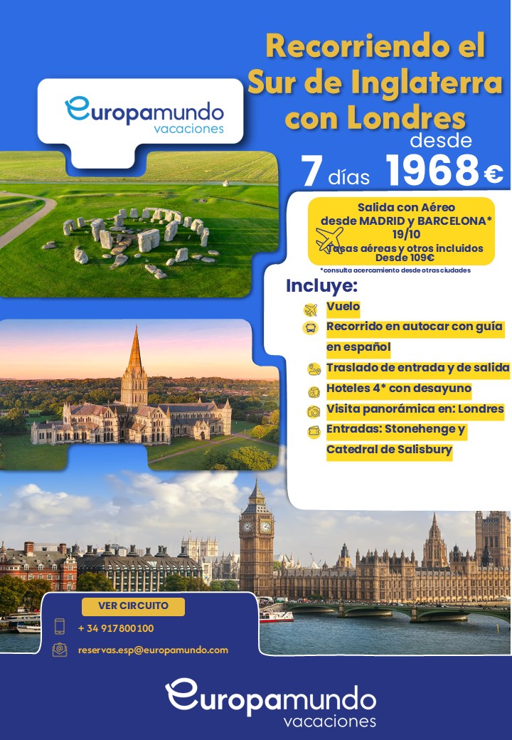 Recorriendo el Sur de Inglaterra. Salida con Aéreos desde Madrid y Barcelona