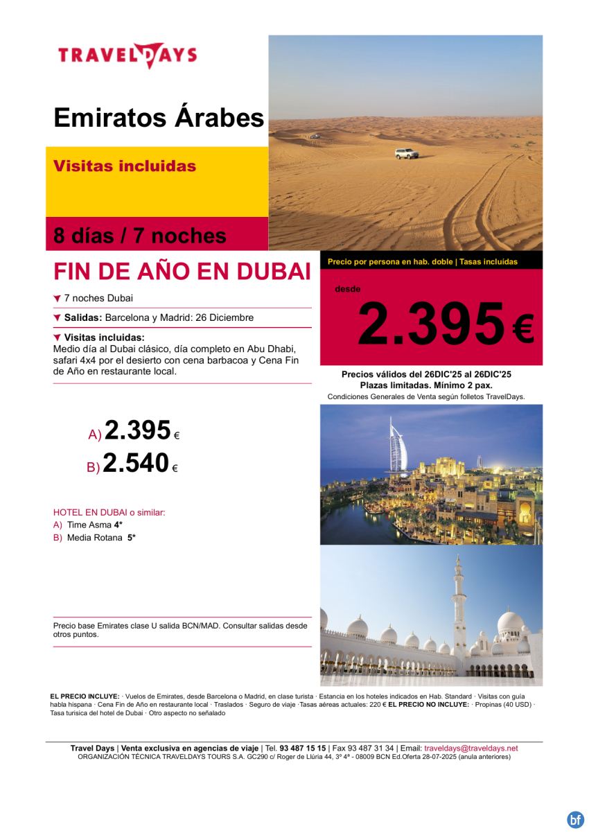 Fin de Año en Dubai - Salida 26 Diciembre - Precio desde 2.395 €