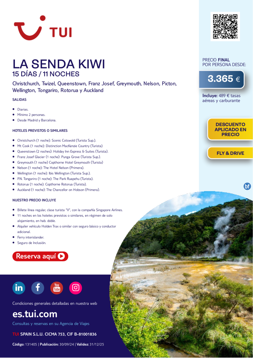 Nueva Zelanda. La Senda Kiwi. 15 días / 11 noches. Fly & Drive. Salidas diarias desde MAD y BCN desde 3.365 €