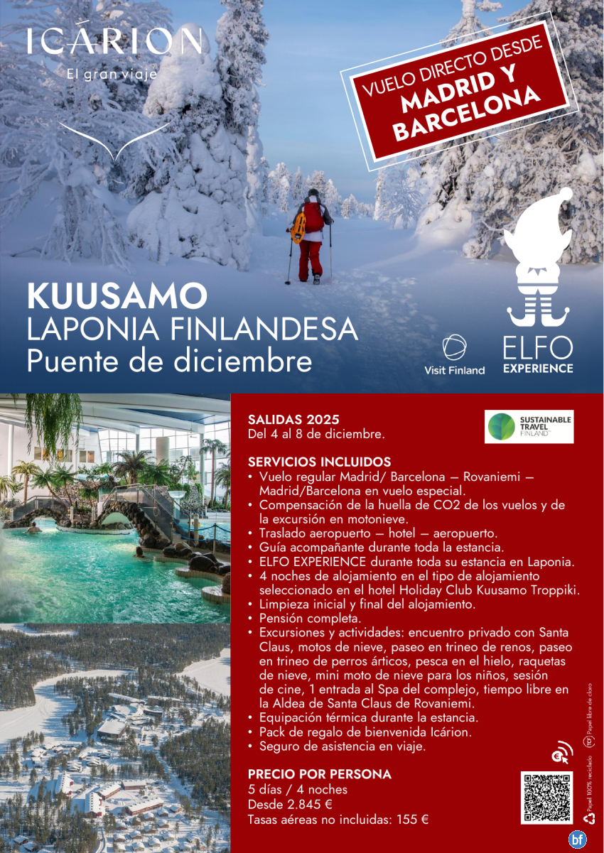 Puente de diciembre en Kuusamo. Vuelo directo desde Madrid y Barcelona