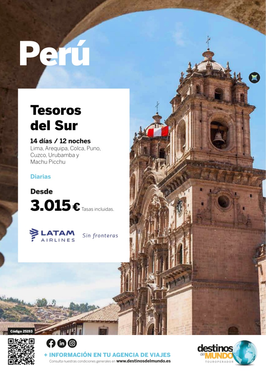 🇵🇪✨PERÚ Tesoros del Sur 2026 14 d / 12 n Salidas: diarias Origen: España desde 3.015€ 🇵🇪✨