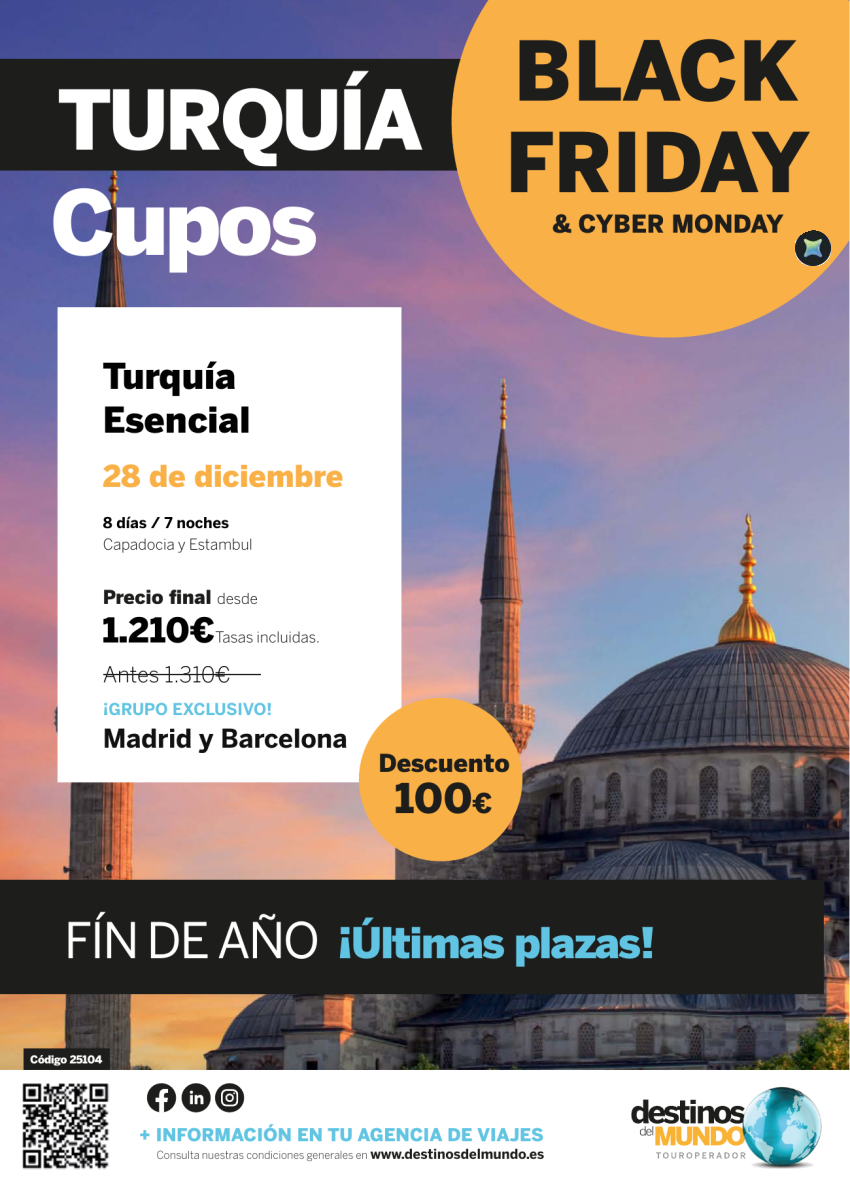 🇹🇷🥳CUPOS Black Friday & Cyber Monday Descuento 100€ Turquía especial fin de año 8 d / 7 n Mad y Bcn