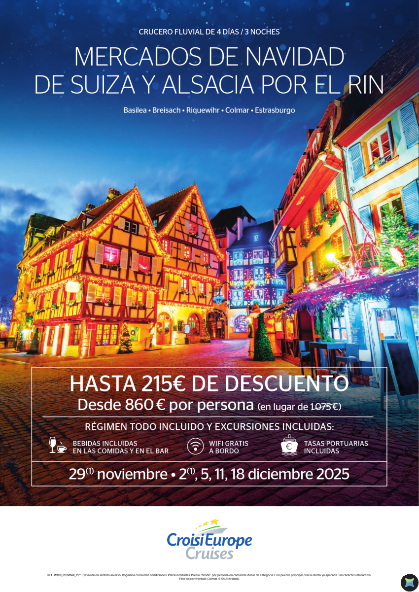Hasta 215€ DESCUENTO - crucero Mercados de Navidad en Suiza y Alsacia - 4 días - todo incluido