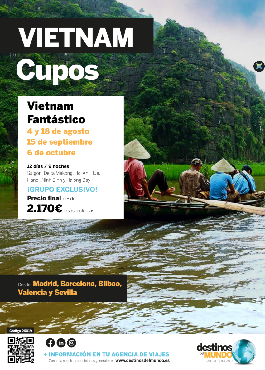 🇻🇳💫CUPOS Vietnam fantástico 12 días / 9 noches salidas: 4, 18 ago / 15 sep / 06 oct desde 2.170€ 🇻🇳💫