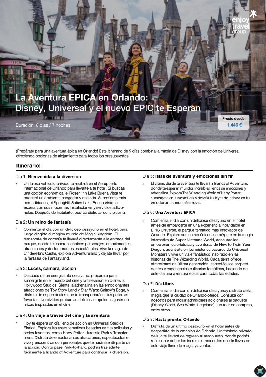 La Aventura EPICA en Orlando - Experiencia multipark desde 1.446€