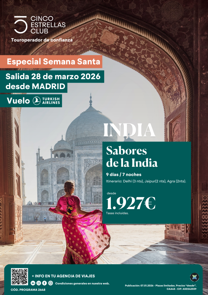 Cupos Semana Santa | Últ. plazas Sabores de la India PVP 1.927€ 9ds/7ns salida 28 marzo desde Madrid.