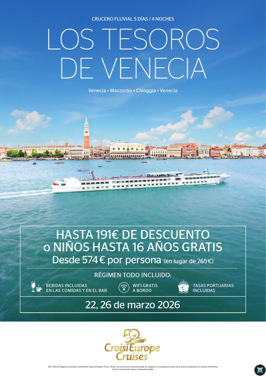 Hasta 191€ DTO o Niños GRATIS - crucero tesoros de Venecia - 5 días - Todo Incluido - 22 y 26 marzo