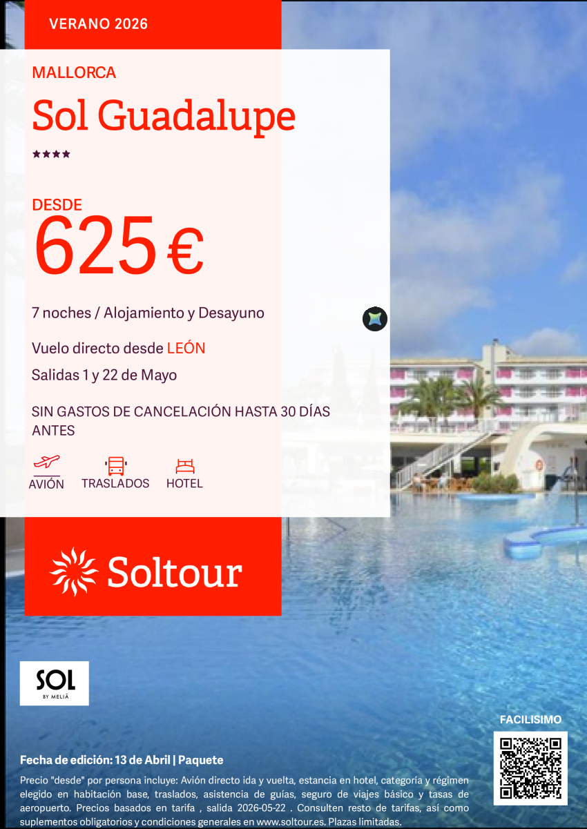 Mallorca Sol Guadalupe con salidas 1 y 22 de mayo, desde 625€ desde León
